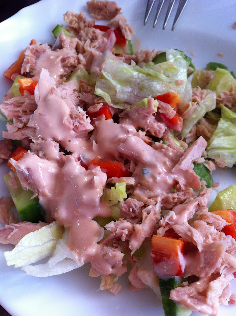 dejlig salat med masser af dressing